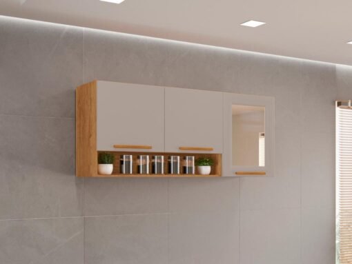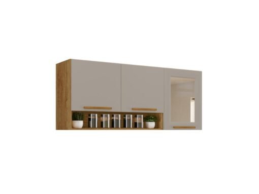 Armário de Cozinha Aéreo New Valência 3 portas Reflecta 1,20m – Cinamomo/Off White
