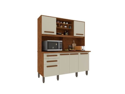 Armário Kit de Cozinha Luna 6 Portas 2 Gavetas – Cinamomo/Off White