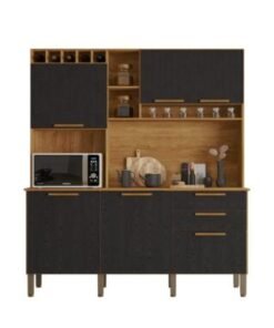 Armário Kit de Cozinha New Topázio 1,65m – Cinamomo/Preto