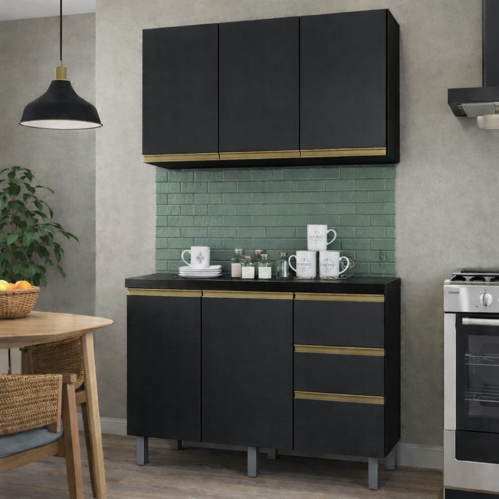Estrutura, portas e frentes de gavetas em MDP de 15mm;