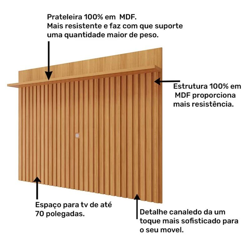 * As imagens dos produtos são meramente ilustrativas. As cores podem sofrer variações dependendo da luminosidade, tipo de câmera, ou mesmo a visualização das imagens em computadores ou notebooks com telas LCD ou LED, tablets ou smartphones dependendo da quantidade de pixls, podendo deixar as imagens com cores mais opacas ou cores mais vibrantes. Os objetos decorativos presentes na imagem não acompanham o produto. Além disso, as TVs podem apresentar variações em suas carcaças de acordo com a marca, portanto meça a TV e veja se a medida do espaço deixado no produto é compatível.