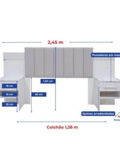 – Altura da mesa de cabeceira 65cm