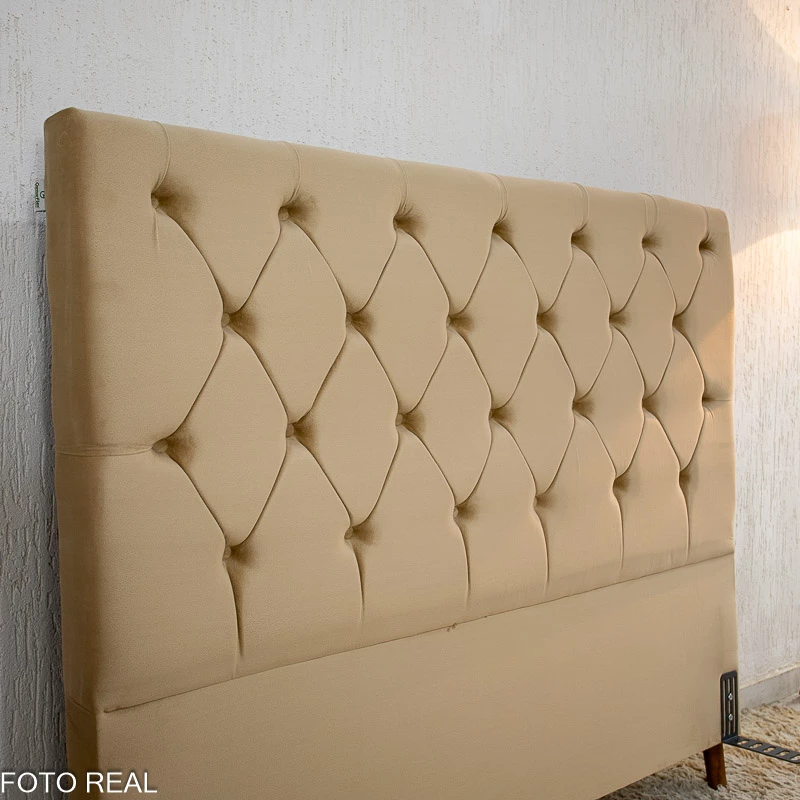 Cabeceira Casal Vitória Veludo Bege Larg. 1.40m