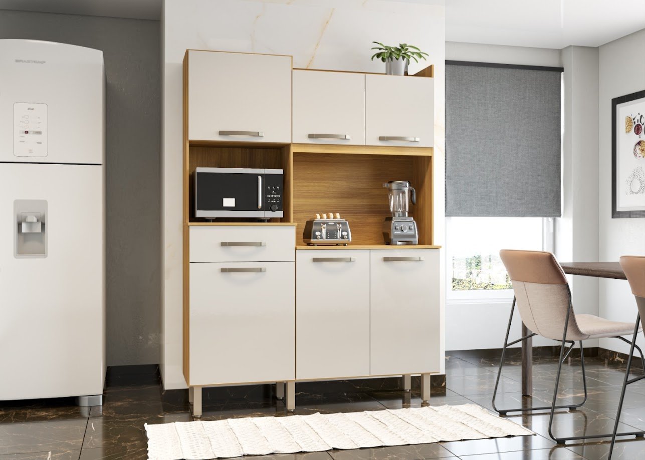 Armário Kit de Cozinha Alexia 6 Portas 2 Gavetas – Cinamomo/Grafite