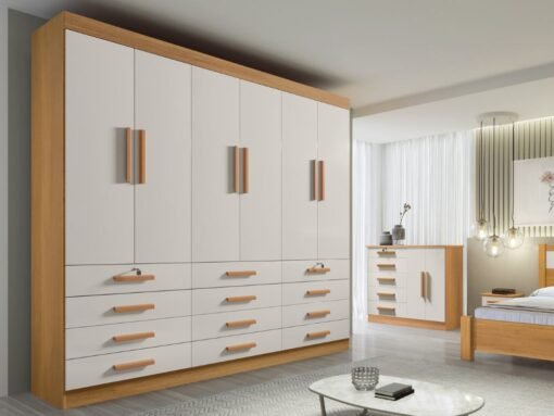 Guarda-Roupa Mônaco 6 portas e 12 gavetas – Cinamomo/Off White