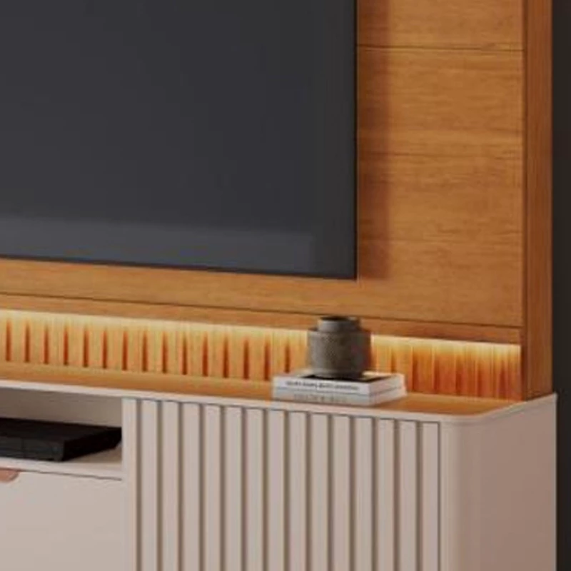 Home Berlim Larg. 1.35m Cinamomo/Off Painel Fresado Para TV até 55″ – Valdemoveis