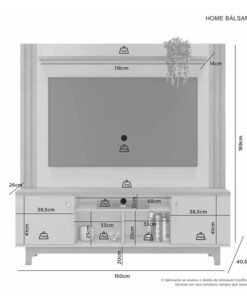 3{%%}Descrição{%%}Home Bálsamo Larg. 1.50m Cinamomo/Off C/ Detalhe Ripado para TV até 65″ – JCM