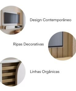 Home Suspenso Jurerê Larg. 1.36m Off/Freijó para TV até 60″ – Colibri