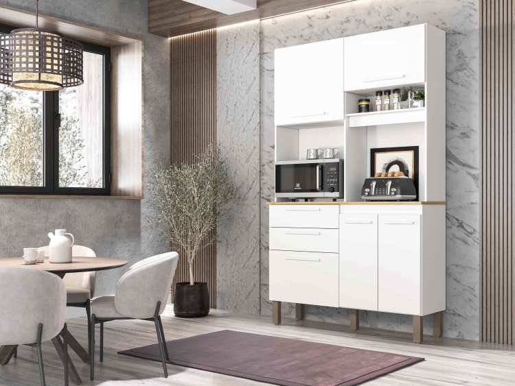 Armário Kit de Cozinha Lia 3 Portas 1 Gavetas – Branco