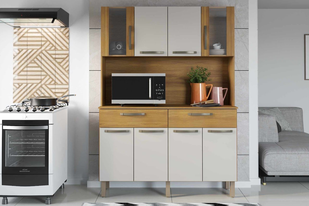 Armário Kit de Cozinha Luna 6 Portas 2 Gavetas – Cinamomo/Off White