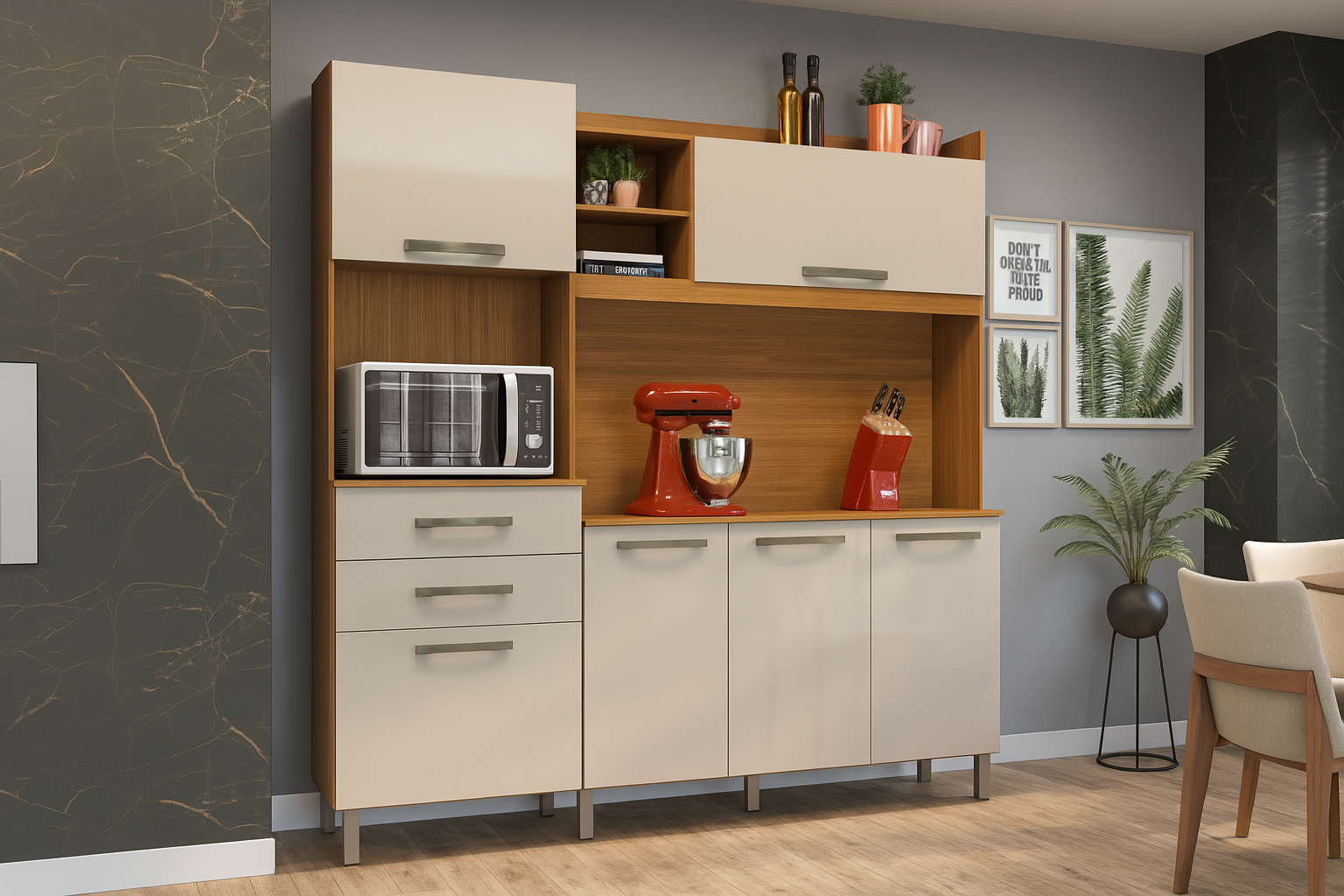 Armário Kit de Cozinha Luna 6 Portas 2 Gavetas – Cinamomo/Grafite