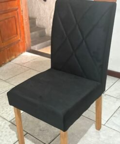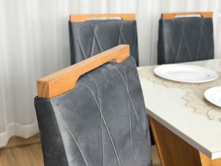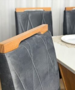 Mesa de Jantar Helo 90×90 Tampo MDF Vidro Off 4 Cad. Lisboa Veludo Cinza 507 Madeira Maciça