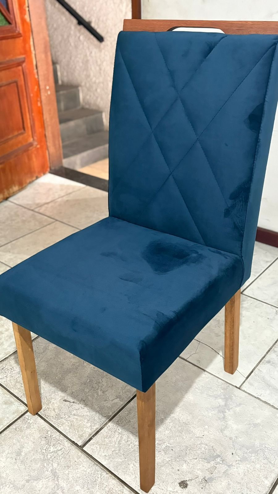 Mesa de Jantar Helo 0.90×0.90 Com 4 Cadeiras Jasmim – Mel/Off White/Azul Veludo
