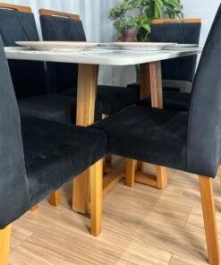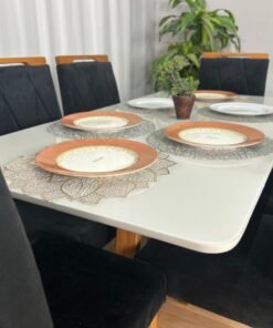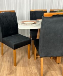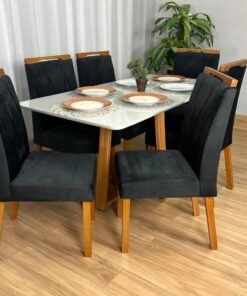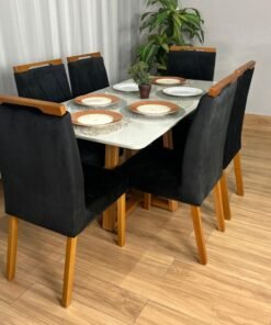 Mesa de Jantar Bali 1.60×0.80 Com 6 Cadeiras Isa – Minas Plac/ Ouro decor