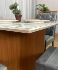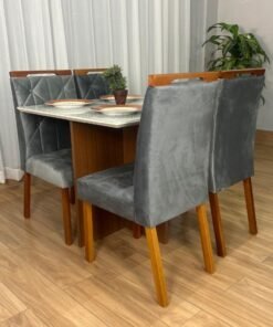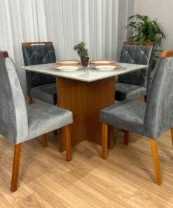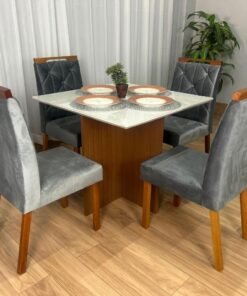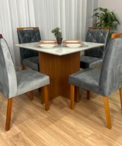 Mesa de Jantar Helo 0.90×0.90 Com 4 Cadeiras Londres – Polimam/ Ouro Decor