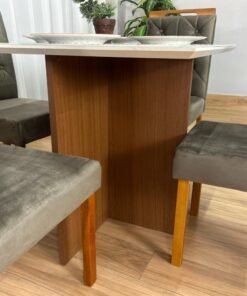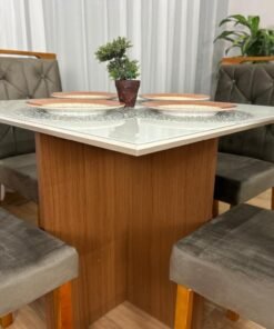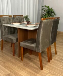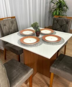 Mesa de Jantar Helo 0.90×0.90 Com 4 Cadeiras Londres – Polimam/ Ouro Decor