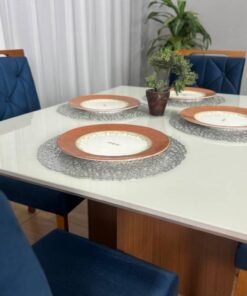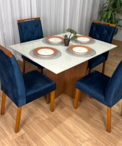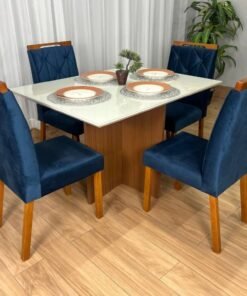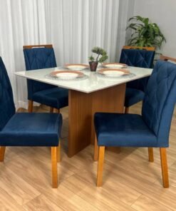 Mesa de Jantar Helo 1.20×0.80 Com 4 Cadeiras Jasmim – Polimam/Ouro decor