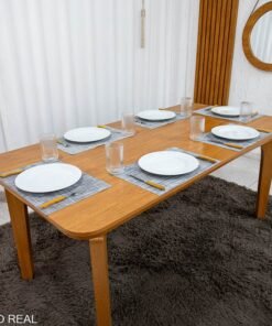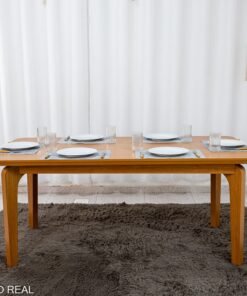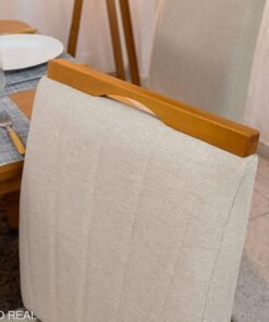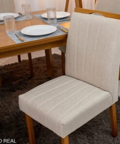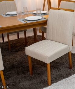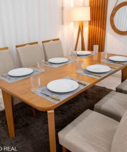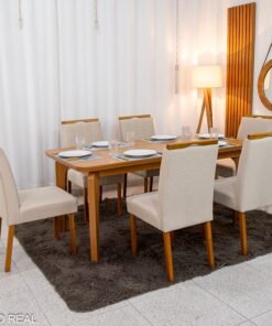 3{%%}Descrição{%%}Mesa de Jantar Londrina 180×90 Cinamomo Rufato + 6 Cad. Isabela Linho Bege 01 Madeira – KM Decor