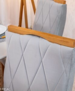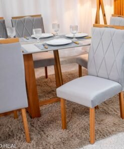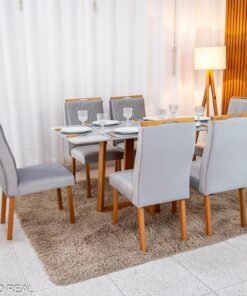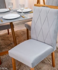 3{%%}Descrição#Como Montar{%%}Mesa de Jantar Pedro 160×80 Vidro Off/Base Madeira + 6 Cad. Lisboa Veludo Prata 514 Madeira Art Assento – Entregue Montada