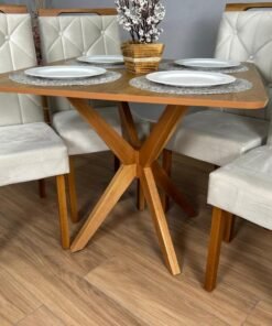Mesa de Jantar Simpatia 0,90×0,90 Quadrada Com 4 cadeiras Jasmim – Cinamomo/Bege