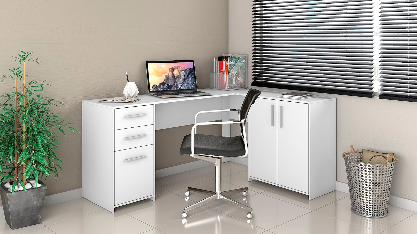 Mesa em MDP 50 kg / PUXADORES EM ALUMÍNIO / PRATELEIRA INTERNA / GAVETEIRO PODE SER MONTADO DO LADO DIREITO OU ESQUERDO