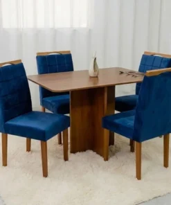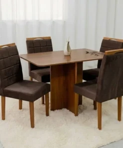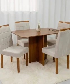 Mesa Salinas 120 (Tampo Londres s/vidro) Cinamomo/Off White com 4 Cadeiras
