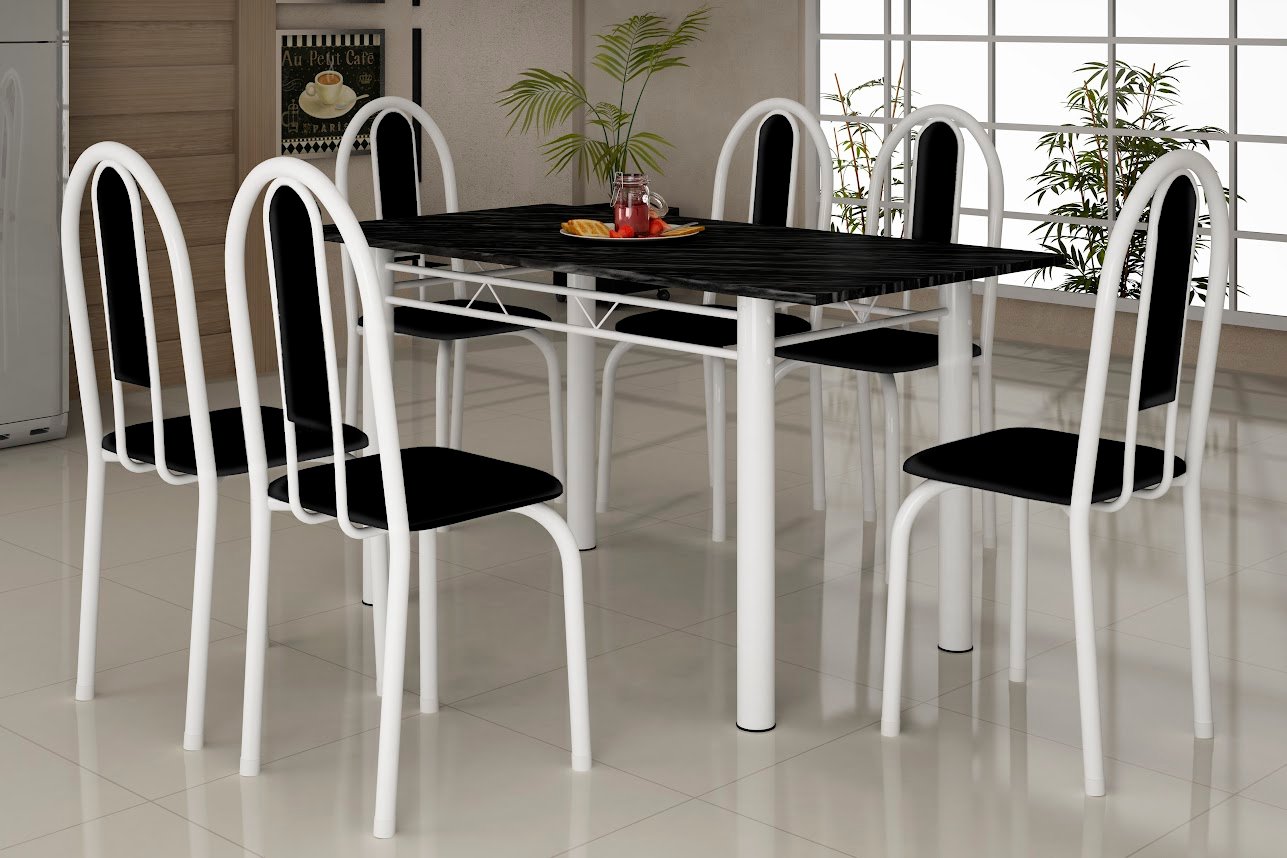 Conjunto Mesa Tubular Rio Preto Fosco com 4 cadeiras Tampo Granito Topázio – 1.00×0.60