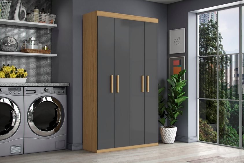 Multiuso Aramóveis 4 Portas, Côr: Atacama/Grafite, da Aramóveis, Medidas: Alt 1,825m Larg 1,026m Prof 0,7m, Estrutura 100% MDP 12 e 15mm, 4 Portas de Bater com Dobradiças Metálicas, 4 Prateleiras Internas, 8 Nichos para Objetos e Utensílios, Puxadores de MDF