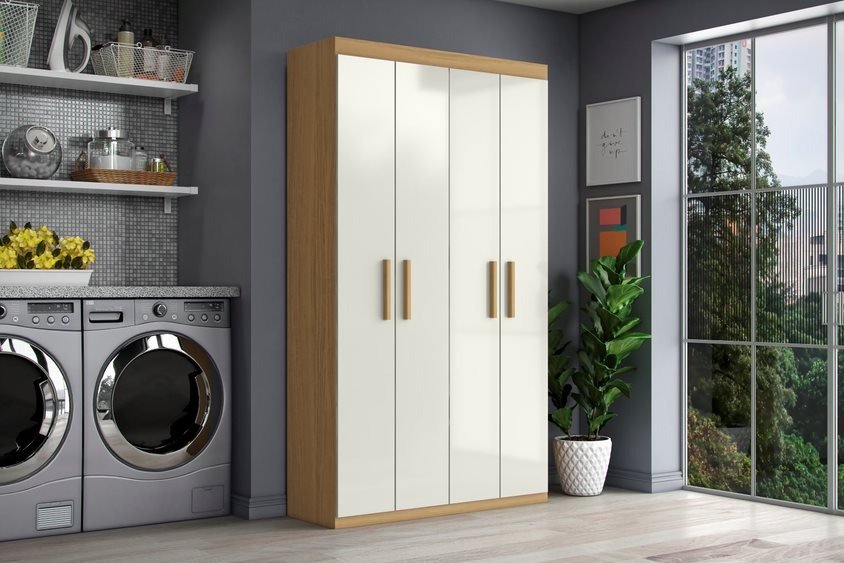 Multiuso Aramóveis 4 Portas, Côr: Atacama/Off White, da Aramóveis, Medidas: Alt 1,825m Larg 1,026m Prof 0,7m, Estrutura 100% MDP 12 e 15mm, 4 Portas de Bater com Dobradiças Metálicas, 4 Prateleiras Internas, 8 Nichos para Objetos e Utensílios, Puxadores de MD