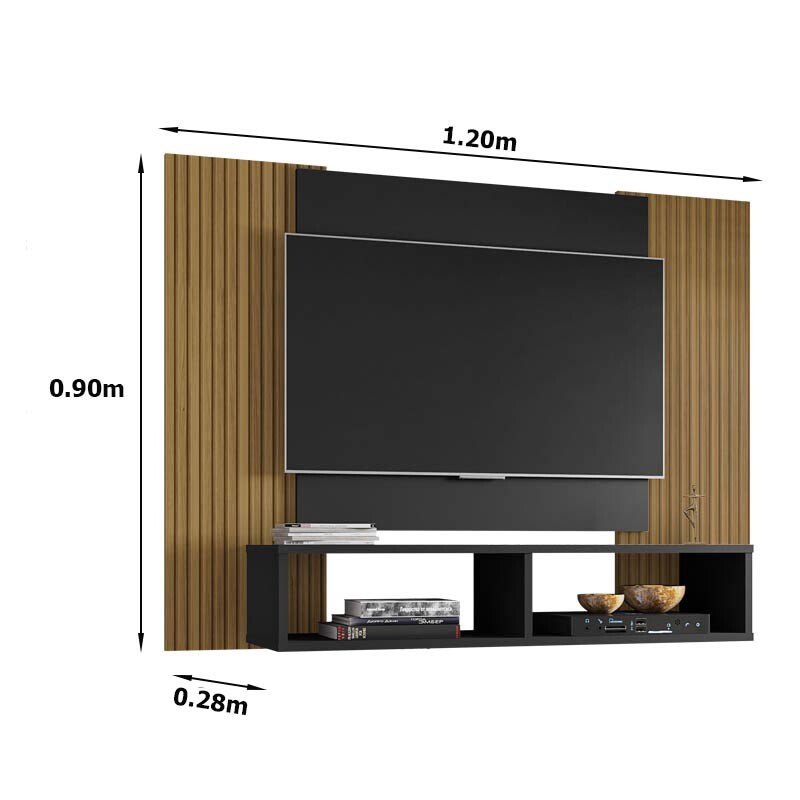 Painel Navi Larg. 1.20m Preto Ripado para TV até 47″ – Bechara