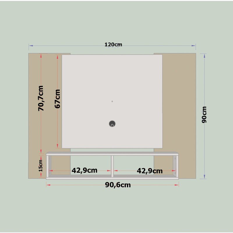– Espaço para TV: 67 x 120 cm (AxL)