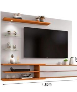 Painel Aurora Larg. 1.80m Mel/Off Detalhe Ripado para TV até 65″ – Viero