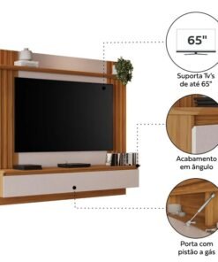 Painel NT 1365 Larg. 1.60m Off/Freijó C/ Detalhe Ripado para TV até 65″ – Notável