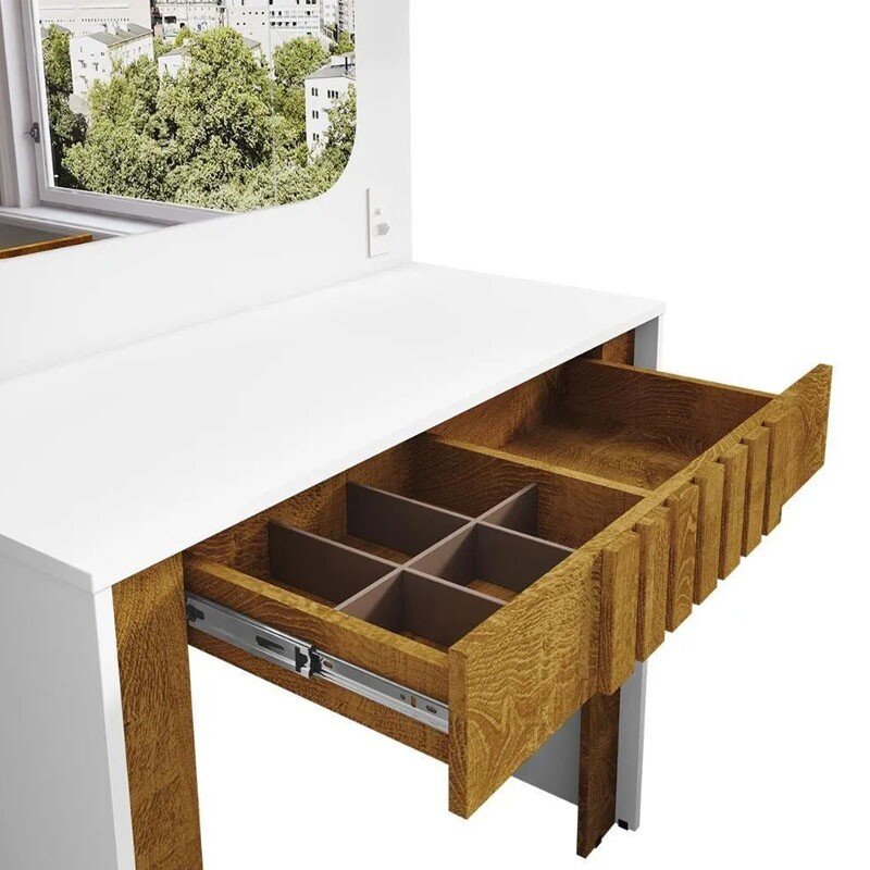 3{%%}Descrição{%%}Penteadeira Camarim Rouge Branco/Nature Larg. 0.90m – Bechara