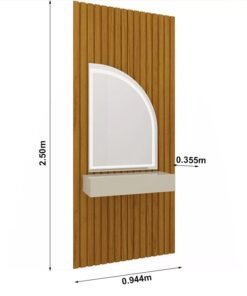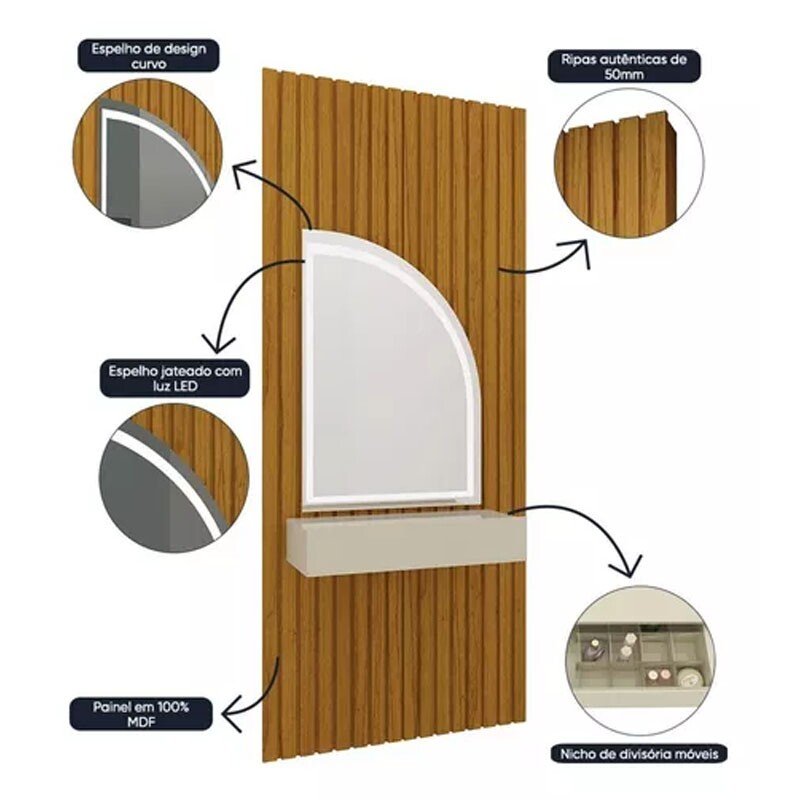 3{%%}Descrição{%%}Penteadeira Realeza Ripada Naturale/Off C/ Espelho e LED Larg. 0.94m – Gelius