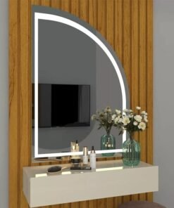 – Espelho de design curvo, jateado e com LED;