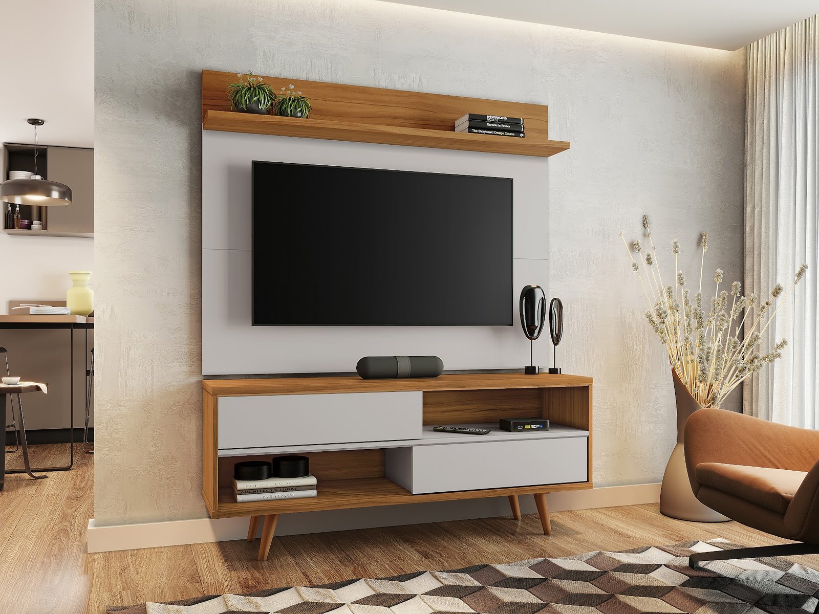 O Painel NT 1185 fornece à você praticidade e beleza para seu ambiente, além de ser um produto muito compacto e fácil de montar! Ideal para TVs de até 50″