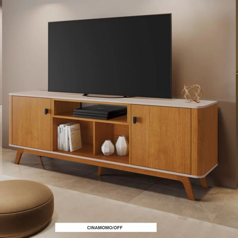 Rack Bancada Oslo Candian Larg.1.80m Cinamomo/Off White C/2 Portas Detalhe Arredondado – JCM