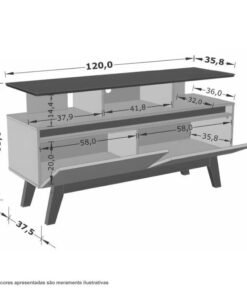 3{%%}Descrição{%%}Rack Bancada Rubi Larg. 1.20m Cinamomo/Preto para TV até 50″ – Bechara
