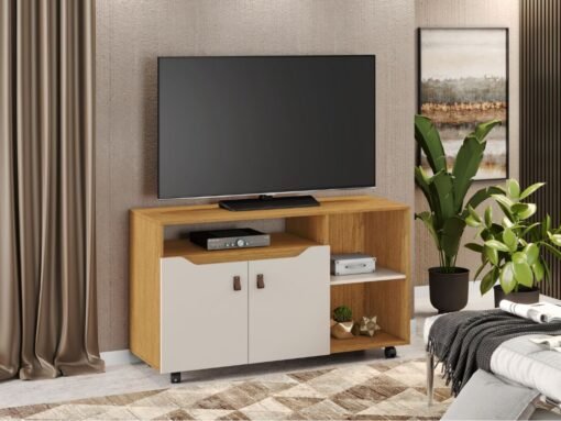 O Rack Seleto 49″ é um móvel moderno e versátil, projetado para acomodar TVs e acessórios eletrônicos. Com um design elegante e espaçoso, oferece prateleiras e compartimentos bem distribuídos para organizar dispositivos e itens decorativos. Fabricada com matérias de qualidade, o Rack Seleto 49- é uma escolha prática e estilosa para complementar a sala de estar.