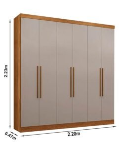 3{%%}Descrição{%%}Roupeiro Casal Coliseu Cinamomo/Off 6 Portas 4 Gavetas Larg. 2.20m – Sallêto