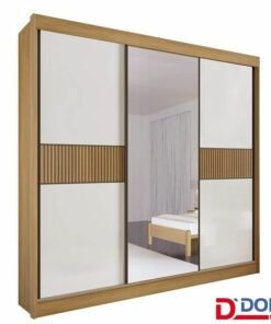 3{%%}Descrição{%%}Roupeiro Casal Los Angeles Cinamomo/Off 3 Portas 6 Gavetas C/ 1 Espelho Detalhe Ripado Portas Flex 100% MDF Larg. 2.73m – D Doro