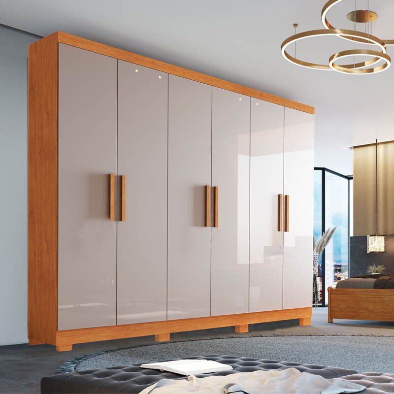 3{%%}Descrição{%%}Roupeiro Casal Sergipe Nature/Off 6 Portas C/ Pés Larg. 1.80m – Bianchi