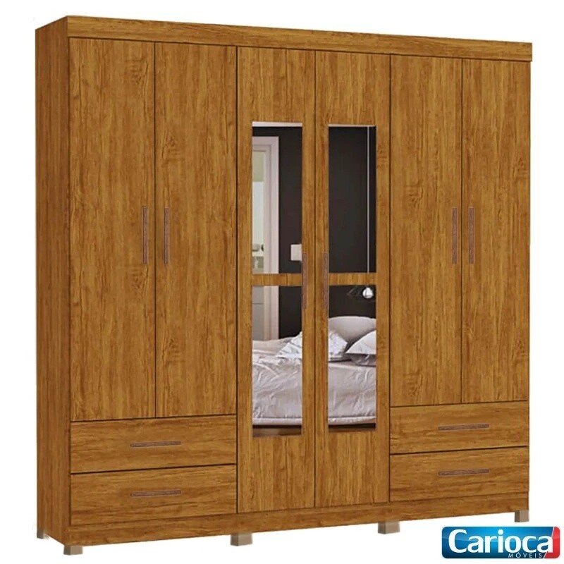 3{%%}Descrição{%%}Roupeiro Hercules 6 Portas com Espelho Cinamomo Larg. 1.77m Com Pés Carioca