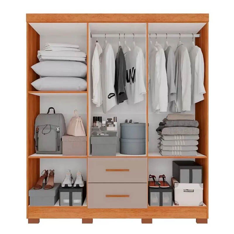 Guarda-Roupa Dubai Plus c/ espelho 3 portas e 3 gavetas – Cinamomo/Off White