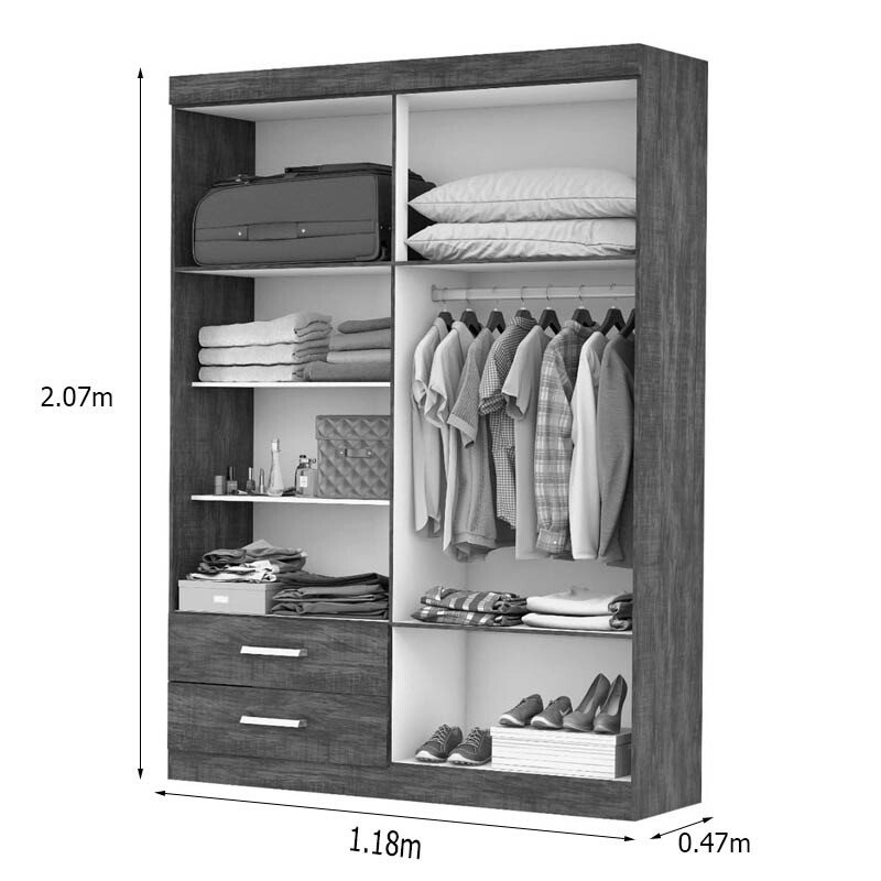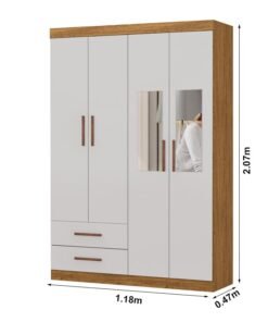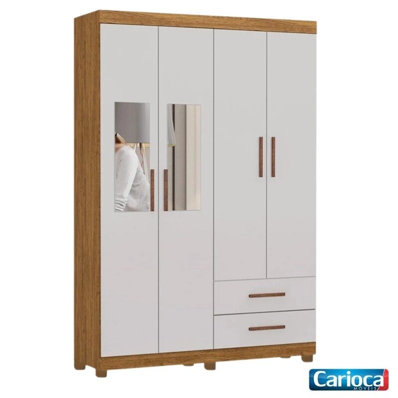 3{%%}Descrição{%%}Roupeiro Solteiro Hercules Cinamomo/Off 04 Portas 02 Gavetas C/Espelho e Pés Larg. 1.18m – Carioca