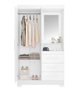 3{%%}Descrição{%%}Roupeiro Solteiro NT 6020 Branco/Rosa 2 portas 3 Gavetas Flex C/Pés Larg. 1.08m – Notável