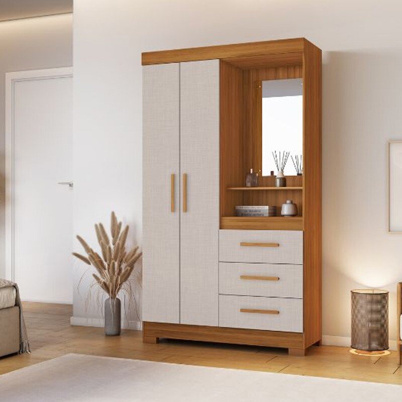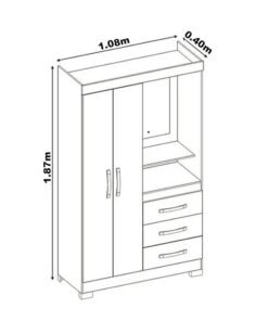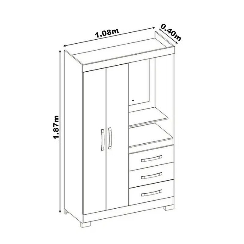 3{%%}Descrição{%%}Roupeiro Solteiro NT 6020 Freijo/Off 2 portas 3 Gavetas Flex C/Pés Larg. 1.08m – Notável