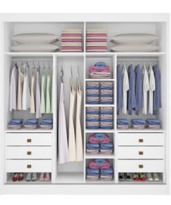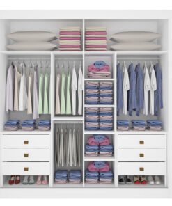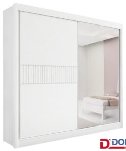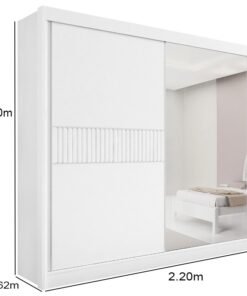 3{%%}Descrição{%%}Roupeiro Titanium Branco 2 Portas C/ 1 Espelho Detalhe Ripado 100% MDF Larg. 2.20m – D Doro