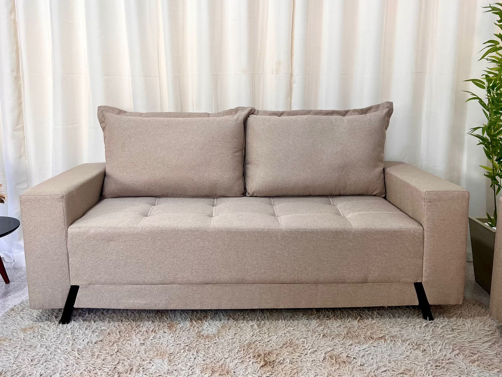 O linho possui uma textura naturalmente sofisticada, que confere ao sofá um aspecto elegante e atemporal